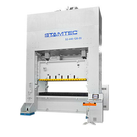 Al igual que nuestras prensas de lado recto de un punto, nuestras prensas de lado recto de dos puntos (también conocidas como prensas de doble manivela) tiene enormes lechos fabricados con no más de 0.0015 pulgadas de desviación por cada pie de longitud del lecho (0.125 mm por metro), tanto de izquierda a derecha como del frente a la parte trasera. Las estructuras de bastidor para las prensas de dos puntos se someten a un riguroso análisis de elementos finitos antes de la manufactura para asegurar el diseño apropiado y una resistencia superior.
